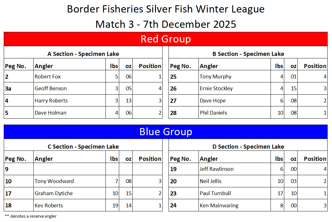 Winter league 2025/26 – Match 3 of 10 – 7th December 2025